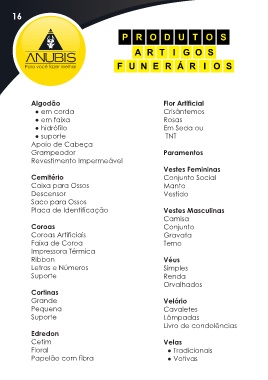 Page 18 - Catálogo Anubis - Produtos para tanatopraxia