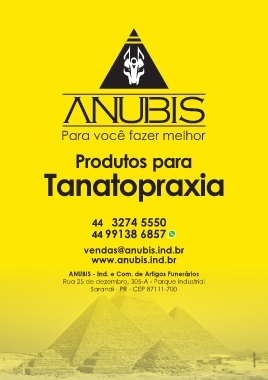 Produtos para Tanatopraxia 44 3274 5550 44 99138 6857 vendas@anubis.ind.br www.anubis.ind.br ANUBIS - Ind. e Com. de Artigos Funerários Rua 25 de dezembro, 305-A - Parque Industrial Sarandi - PR - CEP 87111-700 LIT.CAT.01.2017