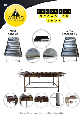 10 P R O D U T O S M E S A S E M I N O X MESA MESA PADRÃO REFORÇADA REFORÇADA PADRÃO 2cm 4cm Comp..: 220cm - Larg.: 85cm - Alt.: 85cm - Peso: 55 Kg